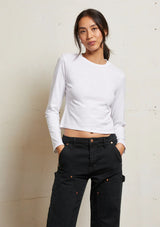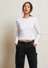 The Jamie Recycled Long sleeve by Perfect White Tee is crafted by recycled cotton with a body-skimming fit that hits right at your natural waist.