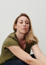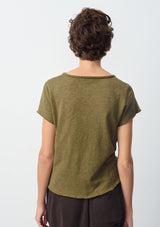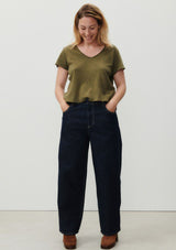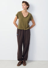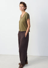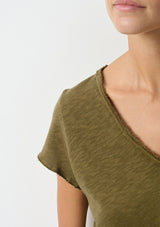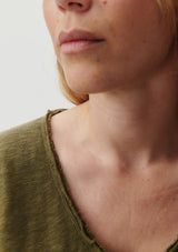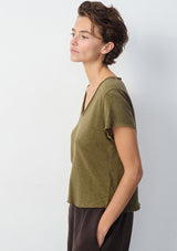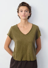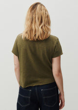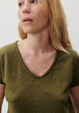 The Sonoma T-Shirt by American Vintage features a V neckline, short sleeves and slightly cropped rolled hemline. It is crafted from 100% Cotton and has a soft fleck finish in the fabrication.
