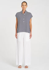 The Henley Tank is a flattering & versatile trans-seasonal piece with button closure through the collar. Crafted in from Mela Purdie's Yacht Stripe Jersey.