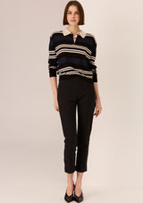 The Parrel Knit Polo by POL Clothing is a breathable piece, perfect for layering. Crafted from mercerised cotton, it features a polo-style collar with a three-button closure through the centre front. Rugby-inspired multi-stripe detailing adds a sporty finish.