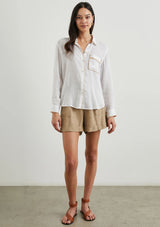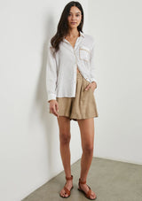 The Charli Shirt from Los Angeles designer, Rails is a breezy take on the classic button-down. It features a classic collar, button fastening, full length sleeves, single pocket detail, buttoned cuffs, back yoke with pleat and a curved hemline. Crafted from a lightweight, soft linen blend fabrication.