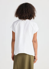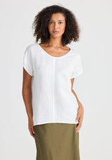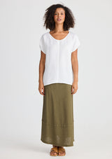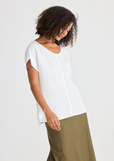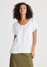 SH25144The Havana Tee by Shanty features a soft V-neckline, short sleeves and a full length to the hip. This Tee is crafted but a linen and viscose blend.
