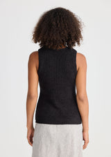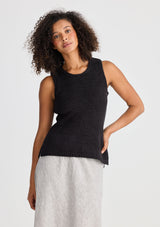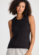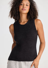 SH25111The Saffron Knit Tank by Shanty features a sleeveless design, round neckline and braided trim details.