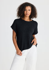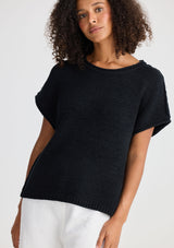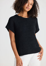 SH25189The Saffron Top by Shanty is crafted by an acrylic blend and features a round neckline, short sleeves and a ribbed hem.