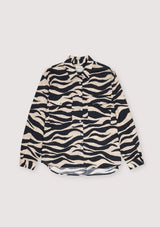 S25WSH1S8The Kavala Woman Shirt by The New Society is crafted from a cotton and linen blend and features long-sleeves with a classic shirt collar and a central button closure, blending timeless tailoring with a modern, playful print.
