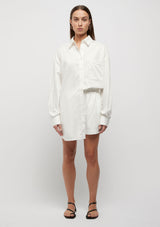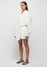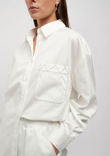 The Dario Contrast Stitching Shirt from Friend of Audrey features a shirt collar, geometric pocket design with a fine contrasting stitch and a full-length cuffed sleeve finish. This oversized summer shirt is cut from crisp 100% Cotton poplin fabrication.