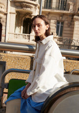 The Jozastreet denim overshirt features its signature shape in new ultra-bright denim. This piece combines a modern design with an ecru fade, offering a look. Made from high-quality denim, it has a comfortable slim fit