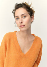 The Razpark V-Neck Midi Jumper by American Vintage features a ribbed knit detail with a v-neckline and full length sleeves. This loose midi length jumper is crafted from a wool blend and is incredibly soft to touch.