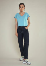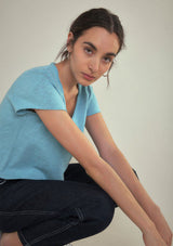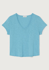 The Sonoma T-Shirt by American Vintage features a V neckline, short sleeves and slightly cropped rolled hemline. It is crafted from 100% Cotton and has a soft fleck finish in the fabrication.