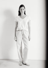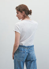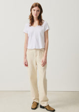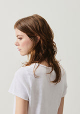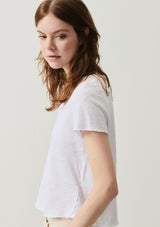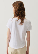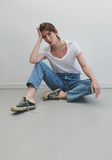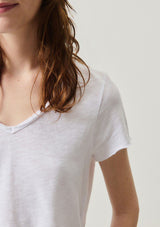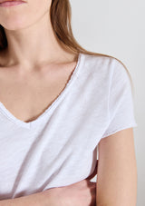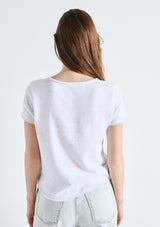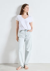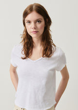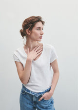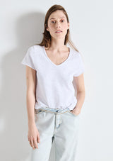 The Sonoma T-Shirt by American Vintage features a V neckline, short sleeves and slightly cropped rolled hemline. It is crafted from 100% Cotton and has a soft fleck finish in the fabrication