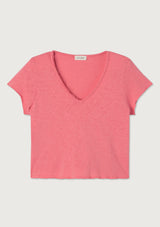The Sonoma T-Shirt by American Vintage features a V neckline, short sleeves and slightly cropped rolled hemline. It is crafted from 100% Cotton and has a soft fleck finish in the fabrication.