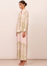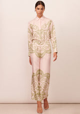 The Coralie Silk Oversized Shirt from Apartment Clothing offers effortless style and luxurious comfort. This shirt is crafted from 100% silk twill in a signature print and features a collar, button through opening and full-length cuffed sleeves. Experience timeless luxury with this comfortable yet fashionable piece.