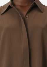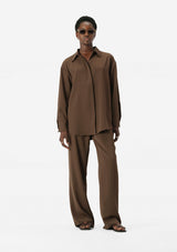 The Edra LS Shirt from Elka Collective is an ideal addition to your autumn wardrobe as temperatures begin to shift. Crafted from a mid-weight fabric, this shirt drapes over the body, falling to a beautifully flattering fit. It features a classic collar, drop shoulders, full length sleeves, curved cuff detail with monogram buttons and a curved hemline. Designed in a classic shirt style, the concealed button placket and rear pleating create a distinctly feminine silhouette. Complete your ensemble by pairing it with the Edra Pant for a polished and coordinated look.