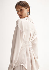 The Ella Shirt by Elka Collective is a standard classic shirt with a twist. Crafted by 100% Japanese Recycled Polyester and featuring long sleeves with wide cuff, classic shirt collar and waist tie detailing at the back.