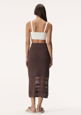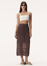 The Haigh Knit Skirt from Elka Collective is sculpted to perfection, with an elastic waist, drawstring, and a fitted silhouette in a classic midi length. Its luxurious feel guarantees that you'll always look stunning when you slip it on. Complete the look with the matching Haigh Knit Top.