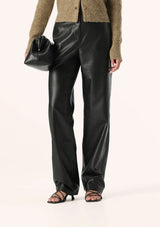 The Koichi Pant from Elka Collective features a mid-rise waist with zip fly, side and back pockets, and a relaxed, full length straight leg. Fully lined and crafted from a signature vegan leather fabric, the Koichi Pant is buttery soft with a matte finish. Pair with essential knitwear and basics for an effortless desk to drinks look.