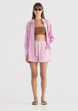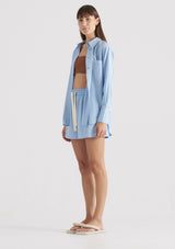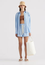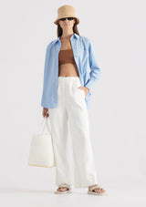 The Lindsey Shirt from Elka Collective is a lightweight, breezy relaxed fitting shirt crafted in a cool hand-feel bamboo blended fabrication. Featuring a classic shirt collar with button down front, single patch pocket, cuffed sleeves a slightly longer length.