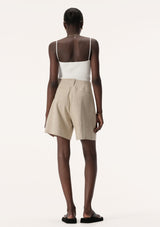 The Maja Short from Elka Collective features a flat front, zip and feature button fastening with side seam pockets, welted back pockets and a slightly flared silhouette. This tailored short is crafted from viscose and linen blend and can be styled with any of the tops on offer for the ultimate summer look.