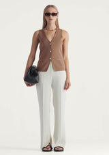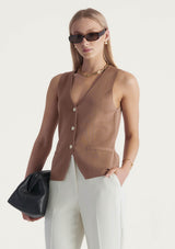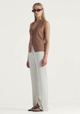 The Murcia Knit Vest features a sleeveless design with a V-neck and button-down front fastening. Crafted in a cool hand-feel viscose-based yarn, this knit vest is a sweet and simple outfitting layer, elevated yet casual.