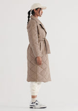 The Simone Down Jacket by Elka Collective is crafted using certified responsibly sourced duck down filling. Designed in classic coat styling, it features a quilted nylon main fabric, waist-tie sash to fasten closed, front pockets and branded Elka Collective grosgrain tab along the bottom hem.