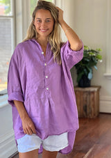 The Megan Shirt from frockk features a button opening with front panel detail, long sleeves that can be worn rolled up and an oversized silhouette which falls lower at the back hem. This shirt is crafted from 100% washed linen; a non-stretch fabrication that is breathable and ideal for everyday wear.