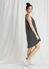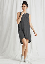 The Khlassik Sleeveless Tank Dress is crafted from 100% Organic Cotton. This Dress features a round neckline, high-low hemline and relaxed fit through the body falling to knee length.