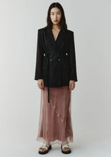 The Arlo Jacket from New Zealand designer, Marle is crafted in 100% Tencel and features a slightly oversized silhouette, classic lapel collar, four shell buttons at the centre front, two flap pockets and long sleeves finished with three shell buttons. This classic double-breasted blazer has an elongated silhouette, falling at a flattering length and features a detachable matching belt.