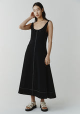 The Emilie Dress from New Zealand designer, Marle is a fitted silhouette through the chest and waist before falling into an A-line skirt through the bottom. Featuring a soft round neckline, wide straps, invisible zipper at the side and finished with a contrast stitch detailing through the middle and bottom hem.