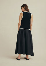 The Jordana Top from Marle is a sleeveless knitted tank with contrasting coloured trim detail. This slim fitting top is crafted from 100% Cotton that is soft and breathable.