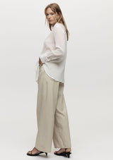 The Nere Shirt from New Zealand designer, Marle, is crafted in a beautifully textured silk cloth that offers a subtle sheerness. The Nere has a classic shirt silhouette with a relaxed fit. It features a large collar, single exposed shell button at the neckline with the remaining buttons sitting under a hidden placket. The full-length sleeves are finished with a large cuff, secured with two shell buttons. Complete with a back yoke and pleat detail, as well as a slightly curved hem, this sophisticated shirt is a timeless addition to any wardrobe.