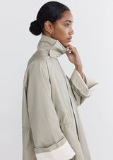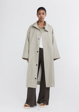 The Parker Jacket from New Zealand designer, Marle features a high stand collar with a detachable hood that is finished with a cotton cord drawstring. This jacket has wide, long sleeves that can be folded back to reveal a contrast ivory lining and a cotton cord drawstring through the waist that can be adjusted for varying styling options. Crafted in 100% waxed cotton, the Parker Jacket boasts a classic autumnal silhouette that is ideal for layering over any outfit. Complete the look with the Alba Tee and Coco Pant.