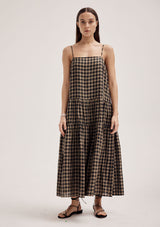 The Vanessa Dress is the perfect lightweight dress for the summer months ahead. This version is crafted in a gingham linen and has the same flattering square neckline and thin straps that can be adjusted at the back for the perfect fit. It has a drop waist, with a gathered panel through the middle.