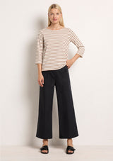 The Boater Stripe Relaxed Boatneck from Mela Purdie features a boat neckline with a ¾ length sleeve and a relaxed fit that falls to the hip. This is a must have essential for every wardrobe, offering optimal comfort and stretch. Crafted from a knit jersey fabrication in the timeless Boater Stripe.