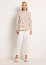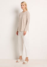 The Studio Top from Mela Purdie features a crew neckline, full length sleeves and a slight curved hemline. This is a must have essential for every wardrobe, offering optimal comfort and stretch. Crafted from a knit jersey fabrication in the timeless Boater Stripe.