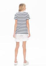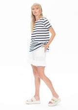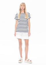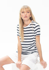 The Deck Stripe Chalk Knit Crew T from Mela Purdie features a crew neckline and flattering sleeve, cut for a relaxed fit, this T is a great trans-season piece. Crafted from an Italian milled Cotton blend made exclusively for Mela Purdie in a true heritage stripe, sure to last for seasons to come.