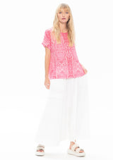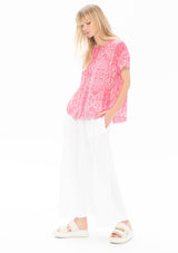 The Cap Shell from Mela Purdie features cap sleeves and a relaxed shape silhouette. Detailing is elegant with a discreet inside bind at the scoop shaped neckline and a simple pleat at the nape of the neck to encourage movement. Cut from delicate paisley Fillagree print in Mela's Silk Crepe De Chine, a luxuriously lightweight Silk, boasting a sumptuous soft handle, matte surface and beautiful drape.