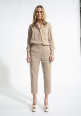The Fatigue Pant from Mela Purdie features an elasticised waistband with side pockets, a straight fit and a standard rise. This versatile pant is crafted from Mela's Popilene fabrication, a crisp stretch cotton in a stripe print.