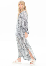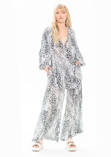 The Escape Blouse from Mela Purdie features a flattering neckline with an option to wear open as a V-neck or single button up for a rounded finish. Gathering and fixed cuffs enhance the billowy shape of the sleeves, allowing you to have some fun with your styling. Cut in striking Lima Print Silk, offering a stunning monochrome brush stroke animal print silk. Silk Crepe De Chine is luxuriously lightweight, boasting a sumptuous soft handle, matte surface and beautiful drape.