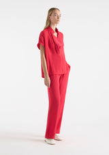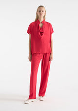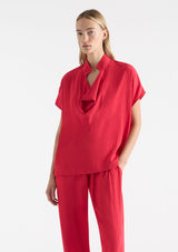 The Fluid Shell from Mela Purdie features an open tab collar with a cowl neckline, capped sleeves, a boxy fit silhouette and finished with a straight hemline. This top is crafted from 100% technical polyester, Mache offers a full bodied, high fashion look that combines style and comfort in a user-friendly fabrication, that is machine washable and ideal for travel.