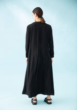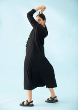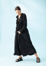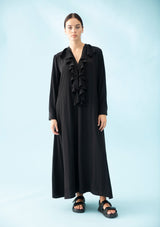 The Mirror Dress by Mela Purdie features a subtle v-neckline with soft ruffle flutter overlay, full length sleeves and a soft tie belt at the waistline. This elegant dress is crafted from 100% technical polyester, Mache offers a full bodied, high fashion look that combines style and comfort in a user-friendly fabrication, that is machine washable and ideal for travel.