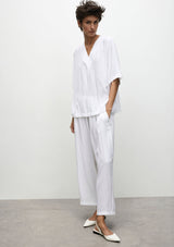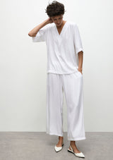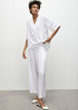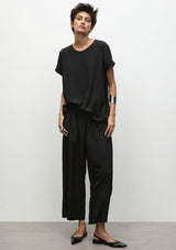 The Pace Pant from Mela Purdie features an elasticised waist, side pockets at hips and a slightly cropped wide leg. This pant is crafted from 100% technical polyester. Mache offers a full bodied, high fashion look that combines style and comfort in a user-friendly fabrication that is machine washable and ideal for travel.