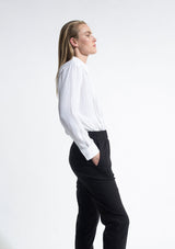 The Pencil Pleat Shirt by Mela Purdie features a classic shirt collar with centre front button-down closure, front pintuck pleat detailing, full-length sleeves with cuffs and a curved hemline. This elegant top is crafted from 100% technical polyester, Mache offers a full bodied, high fashion look that combines style and comfort in a user-friendly fabrication, that is machine washable and ideal for travel.