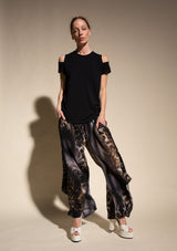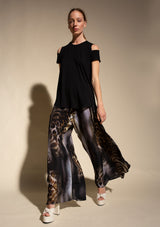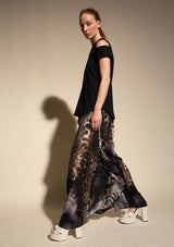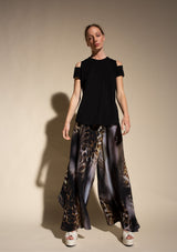 The Slash Shoulder T from Mela Purdie features a high round neckline with detailing at the shoulder and a curved hem. This versatile top is crafted from the renowned matte viscose jersey, offering optimal comfort and stretch.