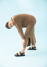 The Crest Sweater Dress from Mela Purdie features a comfortable dropped shoulder and full-length sleeves. The relaxed fit and side split hemline provide ultimate comfort. This Dress is crafted from the renowned matte viscose jersey, offering optimal comfort and stretch.