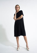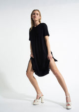 The Maxi T Dress from Mela Purdie features a crew neckline with short sleeves and side splits at the hem. This versatile dress is crafted from the renowned matte viscose jersey, offering optimal comfort and stretch.