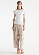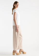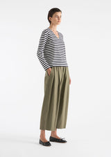 The Panama Pant from Mela Purdie features an elasticated waistband, pockets at hips and an exaggerated barrel silhouette. This comfortable utility pant is crafted from Mela’s best-selling Microprene; a crisp, lightweight cotton stretch fabrication in a polished finish that is machine washable.