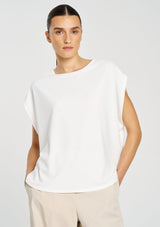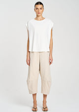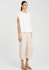 The Circle Shell is a relaxed Mela Purdie style that will work for every occasion. Crafted with a compressed Matte Finish, the Powder Knit provides a drapey and fluid silhouette with ultimate comfort.