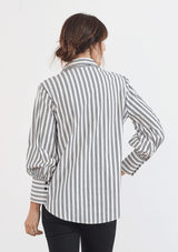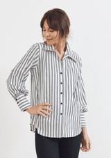 The Samurai Stripe Avenue Shirt features long sleeves with cuffs, button front, placket detailing, and a rounded hemline. Crafted from Mela’s lightweight flexible fabric; Microprene. This cotton/elastane blend is ultra-comfortable and durable and combines style with functionality.