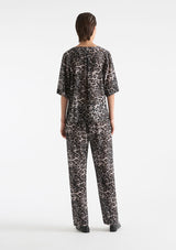 The Savoy Pant from Mela Purdie features an elasticated waist, pockets at hips and a standard rise with a tapered, full-length silhouette. Crafted in the exclusive Savoy Animal Print, Silk Crepe De Chine is Mela's luxuriously lightweight printed silk, boasting a sumptuous soft handle, matte surface and beautiful drape.