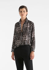 The Soft Shirt from Mela Purdie features a classic shirt collar, concealed front button closure, full length sleeves with shirt cuffs and a back yoke with pleat detailing. Crafted in the exclusive Savoy Animal Print, Silk Crepe De Chine is Mela's luxuriously lightweight printed silk, boasting a sumptuous soft handle, matte surface and beautiful drape.